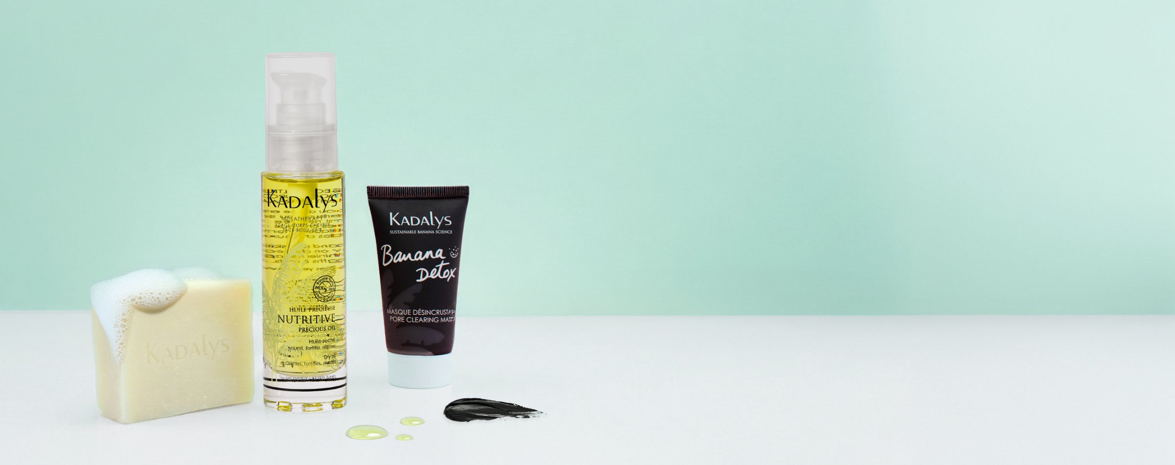 - Grâce à plus de 10 ans de recherche en éco-extraction, Kadalys a développé et breveté 3 BIOACTIFS uniques à base de Banane Verte, Banane Jaune et Banane Rose, aux propriétés antioxydantes, apaisantes, nourrissantes et unifiantes.